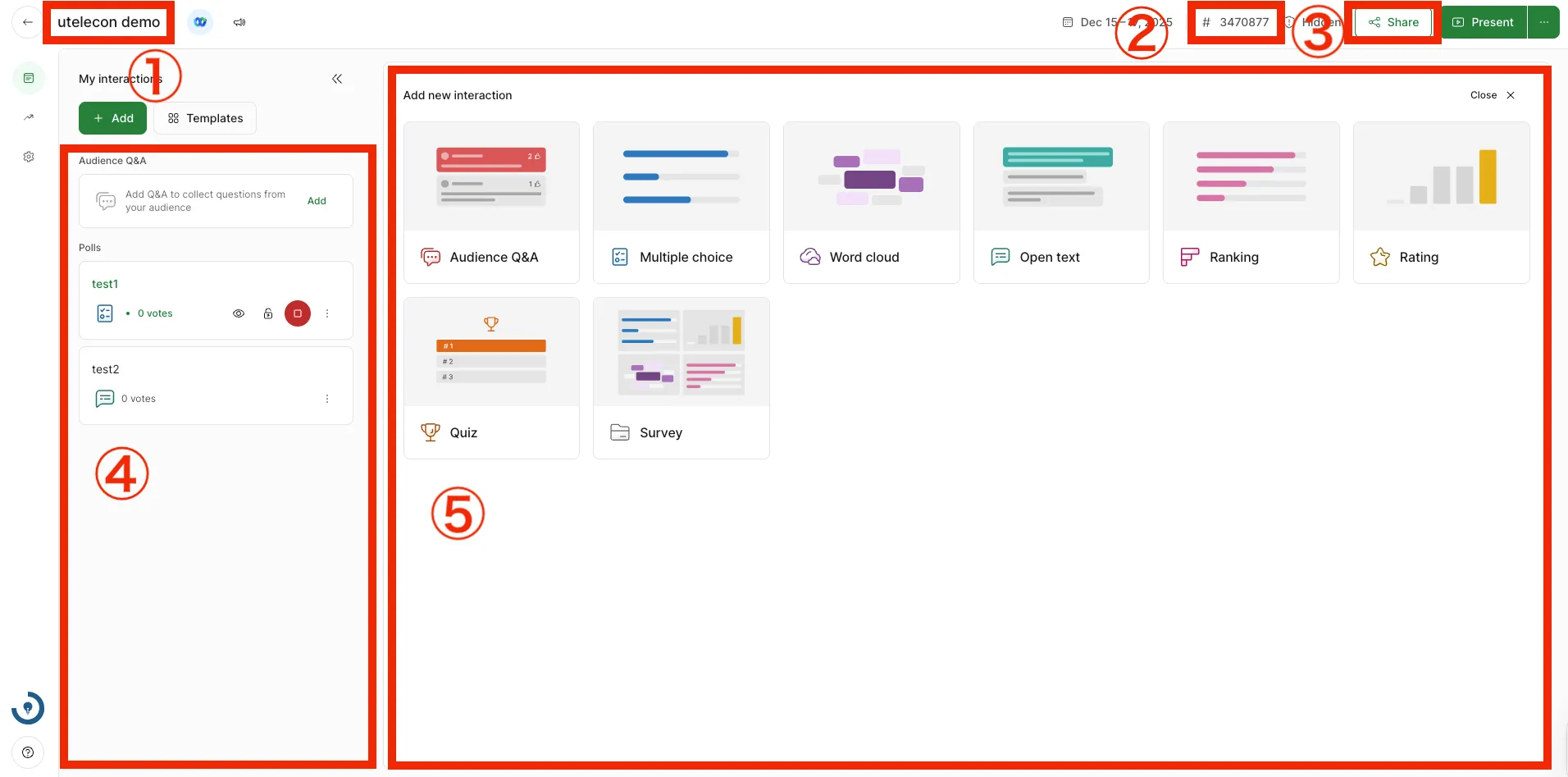 To create a Q&A, select “Audience Q&A” in the upper left corner of the screen or under “Add new interaction”.