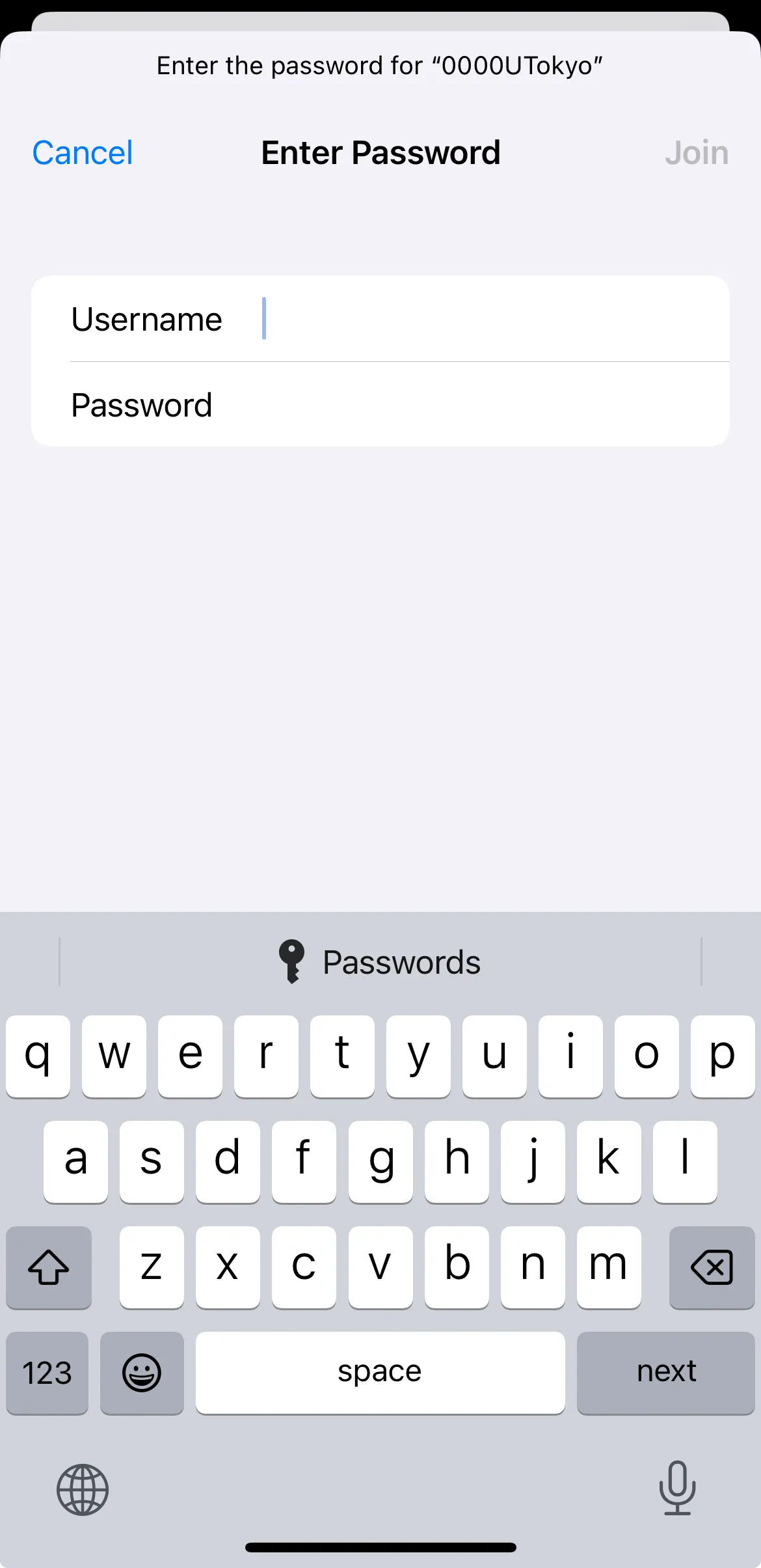 | Password | Enter the password of UTokyo Wi-Fi. |